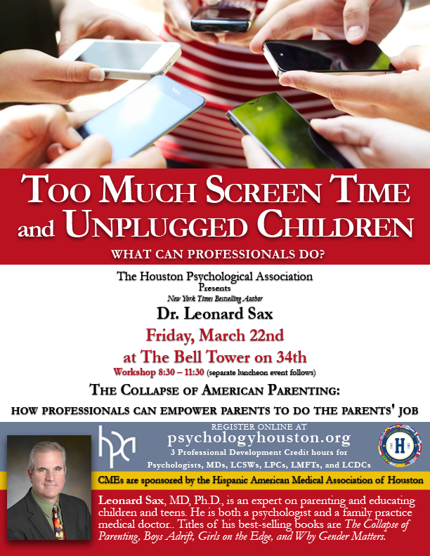 Leonard sax has issued both a warning and an encouragement for parents to take up their proper roles in leading their children to a truly mature.